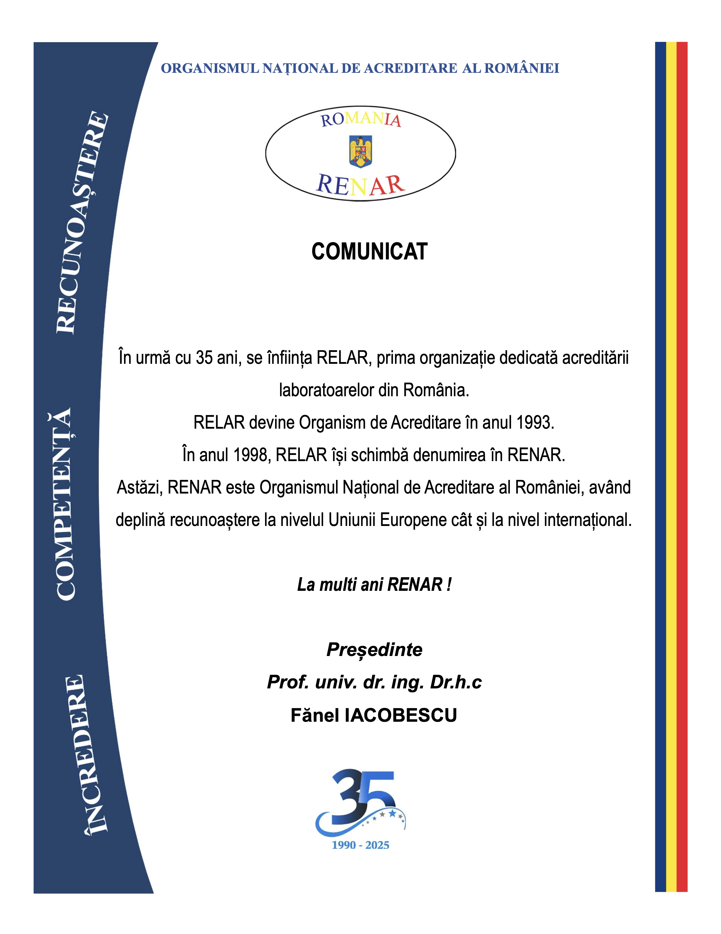 - Comunicat privind utilizarea simbolului de acreditare RENAR
